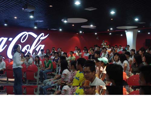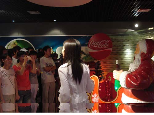 参观团由明水校区各院系的60名同学组成。带着喜悦与好奇的心情,同学们在工作人员的带领下进入了公司的放映厅,在此,同学们受到了热情的款待,并观看了可口可乐放映的宣传片。随后,参观团走进了公司的“时光隧道”,观看了了可口可乐各个时期的发展过程。穿过“时光隧道”,展现在同学们面前的是可口可乐高自动化的生产流水线,那里的工作人员详细地向同学们介绍了制造可乐的整个过程:水净化系统,糖浆制造系统,吹瓶系统以及玻璃瓶生产线。当听说每个庞大的系统只需4个人时,大家都惊叹不已!但最让大家心旷神怡的是公司的博物馆展厅,在此,同学们参观了圣诞老人模型,第一杯可乐卖出时的小屋模型——可乐木桶,以及与可口可乐合作的“魔兽世界”。与此同时,工作人员还向大家接受了公司的历史与线上赌场。同学们在展厅纷纷合影留念。
