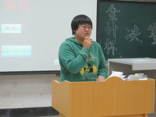 在比赛过程中,评委针对辩手在开篇立论、质询、质询小结、自由辩论、总结陈辞、团队配合及临场反应六个方面的表现进行打分,最终,会计1201班代表队以平均分79分的成绩夺得本次比赛的冠军,财务管理1203班和会计1208班分别获得亚军和季军,同时王翊飞、王春萌、朱慧敏等六位同学因出色的表现获得最佳辩手称号。最后,线上赌场 辩论队2010级领队为获奖班级和同学颁发证书,至此,本届“会计杯”新生班级辩论赛圆满落下帷幕。