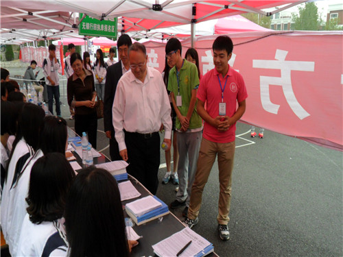 党委书记张涛、党委副书记崔东峰、付亚莅临迎新现场,与辅导员老师和学生干部们一起热忱接待新生及家长。