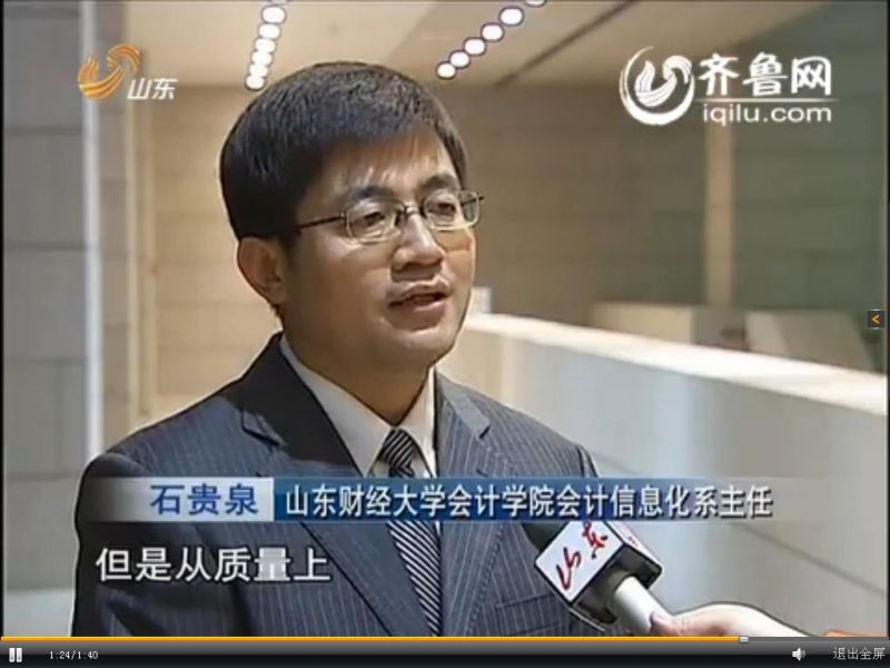 会计信息化系主任石贵泉副教授就此接受了《山东新闻联播》记者的专访,针对我省电商经济进行点评,并对我省未来推动电商发展,拓展农产品网上销售渠道出谋划策。