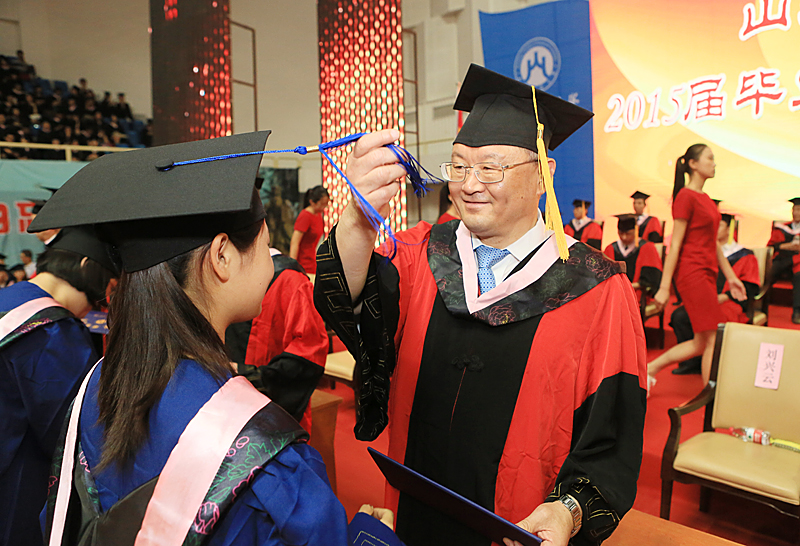 大一学生满怀不舍和祝福,送别全体毕业生,豪情满满的歌声为本次典礼首添亮色。大会伊始,副校长聂培尧、綦好东、胡文波分别宣读了2015届普通硕士生、本专科学生毕业的决定和表彰2015届2015届优秀毕业生的决定。随后,毕业生代表上台领取了毕业证书及优秀毕业生荣誉证书。紧接着,毕业生代表和教师代表先后发言,表达了对母校的感谢、眷恋和对毕业学子的希望、祝福。之后,校长卓志作了题为《勿忘初心 带着山东财大精神扬帆远航》的重要讲话。卓志校长勉励广大毕业生勿忘人性之初心、求学之初心、财大之初心、报国之初心,应勇敢的置身于时代潮流中磨练自己,为中华民族的崛起和复兴贡献自己的力量。典礼最后,2015届优秀毕业生代表、线上赌场