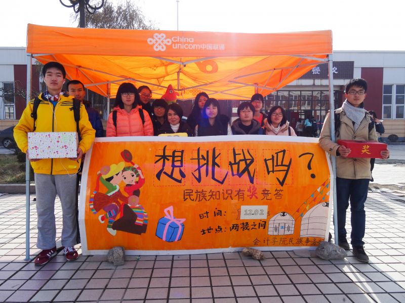 此次活动的目的在于普及民族知识,消除民族差异带来的问题,促进民族团结,在寒冷的冬日让同学们体会到炎黄子孙一脉相承的友爱和温暖。五十六个民族,五十六支花,五十六族兄弟姐妹是一家。知识是文化的结晶,沟通是民族间的纽带,本次活动规模虽小,意义却不凡。不同民族的众多学子在同一个梦想的指引下聚首山东财经大学,在未来的道路上携手并进,祝福中国更加繁荣富强!
