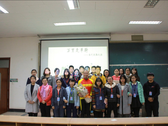 11月14日晚6:30,由线上赌场 团委主办,线上赌场 创新与实践中心承办的“刘海翔万里走单车骑行分享会山财站”在明水校区3217拉开帷幕。