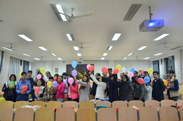 晚上六点三十分,伴随着《告白气球》轻快的旋律,晚会拉开了序幕。“青春的交响绽放华丽的激情,校园的纯真挥洒最美的真挚”,主持人致开场词之后,晚会正式开始。第一个节目是由会计协会会长左绍娜同学和会计协会大一新成员田麒筠同学带来的活力四射的开场舞《Super star》。动感的音乐响起,观众的热情也随即被点燃,一舞结束,全场掌声雷动。紧接着是由大一新成员李一同学带来的歌曲串烧《一次就好》《七月上》。聚光灯下,台上演员深情弹唱;台下观众则纷纷举起双手和着节拍,陶醉在清澈迷人的歌声里。一曲结束,观众们沉浸在歌曲的温情中回味无穷。接下来进行的游戏环节——抱团游戏令现场气氛再次热闹起来。同学们热情高涨,争相参加。随着主持人一声令下,台上的同学按照规则迅速抱团,没有抱团的同学则受到了小小的“惩罚”,晚会现场汇成了一片欢歌笑语的海洋。简单的游戏,不仅活跃了现场气氛,更增进了同学们之间的友谊和默契。游戏结束,晚会继续进行。灵风双节棍社团献上酷炫的焰火双节棍表演,迸射的火花引的台下观众尖叫连连;会计协会大二成员孙凡淑同学带来的舞蹈《极乐净土》仿佛将观众带到了另一个纯净的世界;更有会计协会三位同学合作带来的搞笑舞蹈《江南皮革厂》引得现场观众哈哈大笑。晚会接近尾声,又是一波游戏互动环节。同学们两两配合,合力用身体挤破气球,最后所有参与的同学都获得了丰厚的奖品。