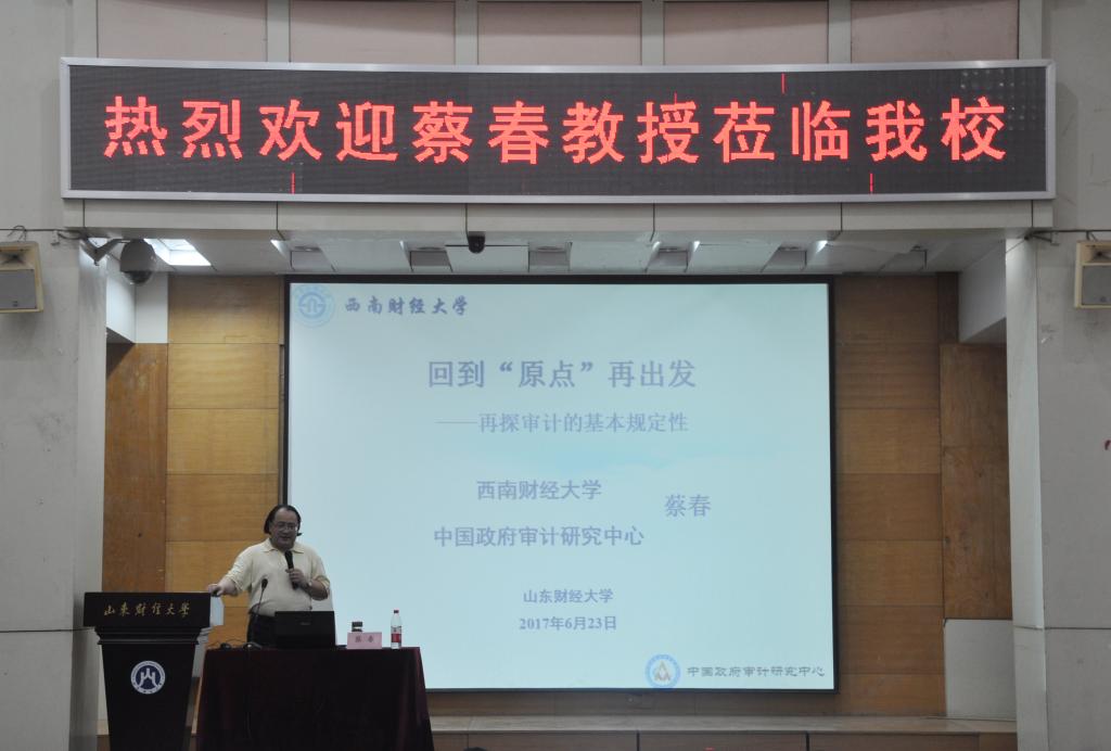 6月23日下午3:00,由线上赌场 研究生会主办的题为《回到“原点”——再探审计的基本规定性》的“燕山论坛”系列讲座在山东财经大学燕山校区3号报告厅拉开帷幕。此次学术讲座荣幸地邀请到西南财经大学蔡春教授为我们讲授其在审计研究方面的独到见解.线上赌场 院长王爱国教授、副院长孙文刚教授、副院长王守海教授出席了本次学术讲座,线上赌场 全体教师以及2016级全体研究生参加此次学术讲座。
