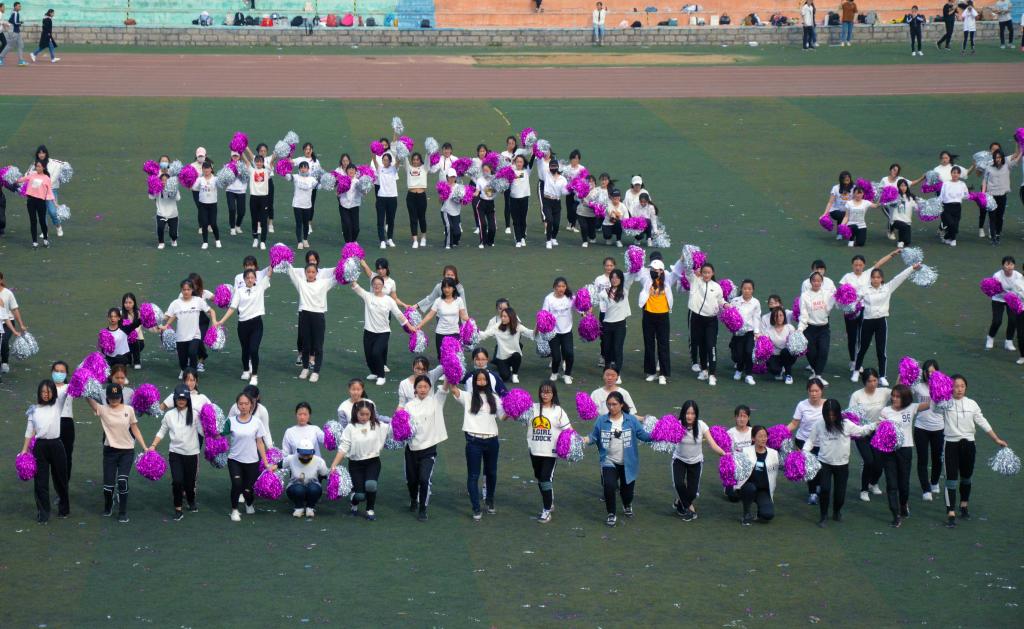 清晨六点,姑娘们在操场上准时集合,为了训练臂力,让动作更有力度更加深入人心,她们用水瓶代替了花球。一次次的抬臂让她们微微出汗,汗水映着朝阳闪耀着如宝石般美丽的光芒。旋转、踢腿、抬臂、回眸,姑娘们的一颦一簇成为了这个春天最动人的风景。下午五点半,同样的身影,同样的舞姿,但更多的是同样的坚持。没有人轻言放弃,没有人频频不耐,没有人放弃这个团体。影子不断拉长,当太阳完全消失在山的一边,灯光下的操场就是她们的舞台!整齐划一的动作,迅速到位的舞步,眼神交流时无声的默契……引得同学们驻足观看,百看不厌。俗话说的好:“台上一分钟,台下十年功。”一个多月的训练,只为能在耀眼的一瞬光芒万丈!不知疲惫的重复着同样的动作,不知经历了多少重组和调整,不知流下的是汗水还是泪水,她们用行动诠释了青春该有的样子,成为了她们最美丽的样子。