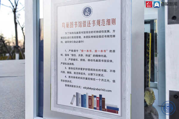 “每个‘鸟巢图书馆’存放约20本书,24小时免费开放且无人值守,借书的学生每借走一本,就要放入一本其它书籍。”李铭毓说,“这几天,看到‘鸟巢’里部分图书已经被借换过,大家都很有满足感很自豪。”