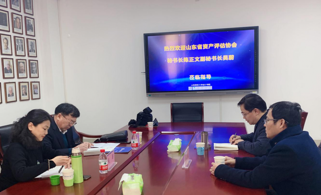 12月24日下午,十大线上赌场推荐 与山东省资产评估协会在逸夫楼召开合作交流会议,省评协副会长兼秘书长陈正文、副秘书长吴蔚、十大线上赌场推荐 王爱国院长、资产评估系主任刘德运副教授参与会议并进行座谈和交流,双方就资产评估行业的建设和发展展开热烈讨论。
