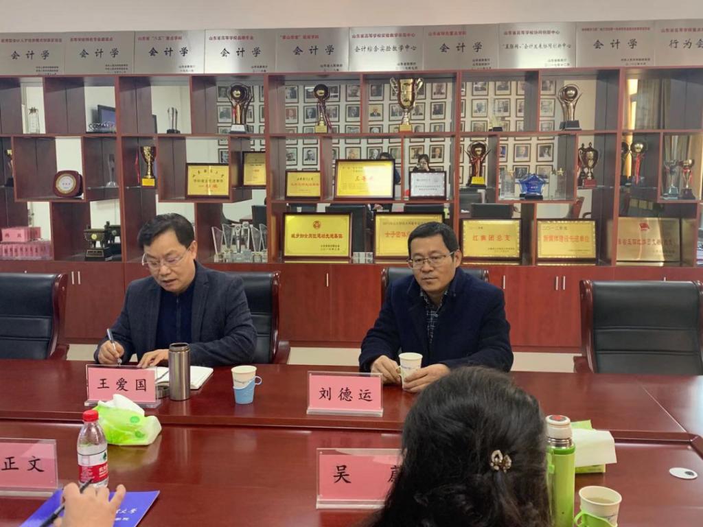 王爱国院长、刘德运副教授首先对山东评估协会领导的到来表示热烈的欢迎,并就协会对线上赌场 一直以来的支持和帮助表示感谢。刘教授首先对线上赌场 资产评估专业的办学历史、课程设置、师资队伍和专业的发展、定位进行了详细介绍。