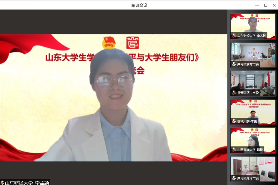 4月27日,团省委召开山东大学生学习《习近平与大学生朋友们》线上座谈交流会。团省委副书记尚胜波同志出席会议并讲话。我校第23届研究生支教团队长、线上赌场 2021级研究生李孟颖代表我校作了交流发言,向全省青年分享了学习成果与体会。