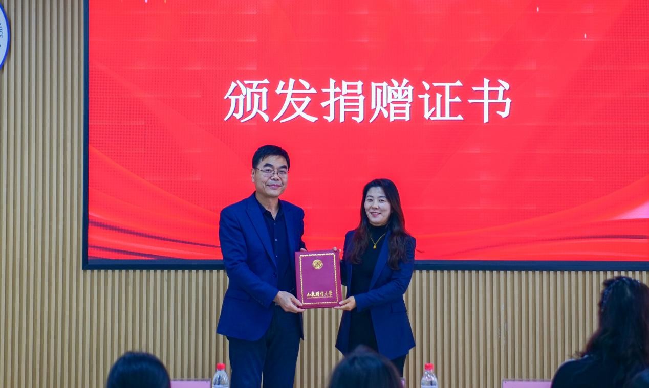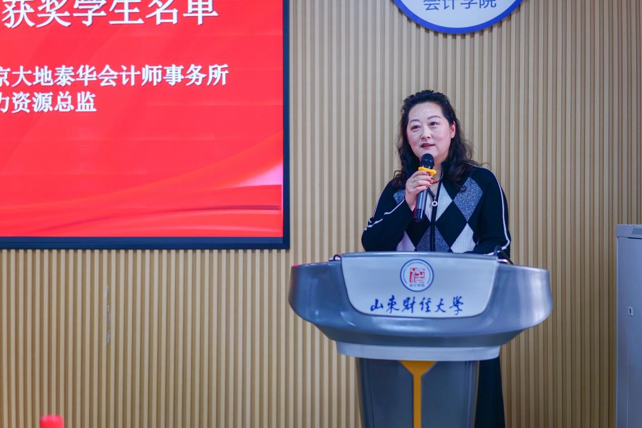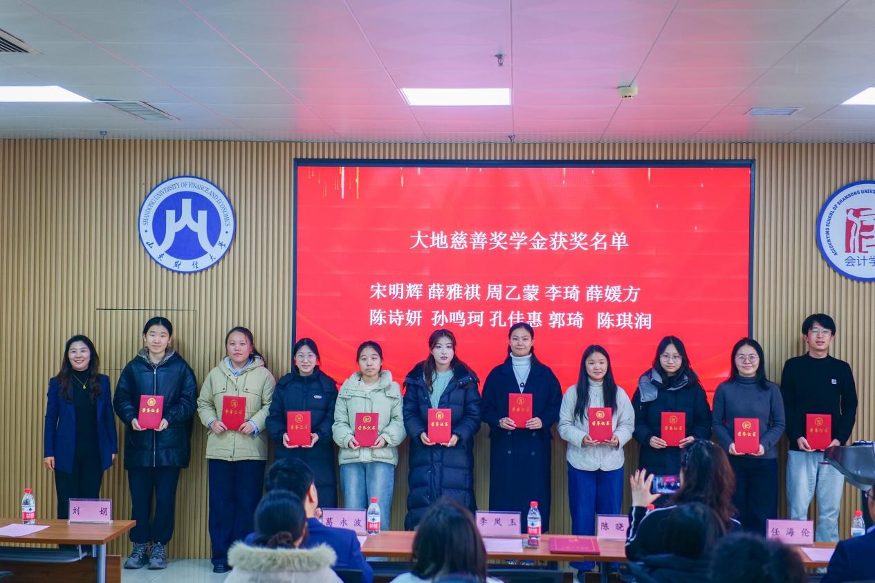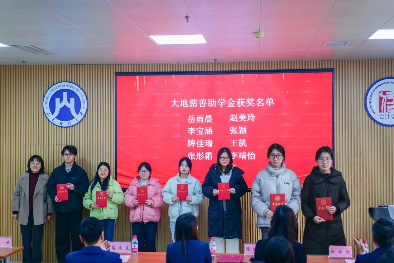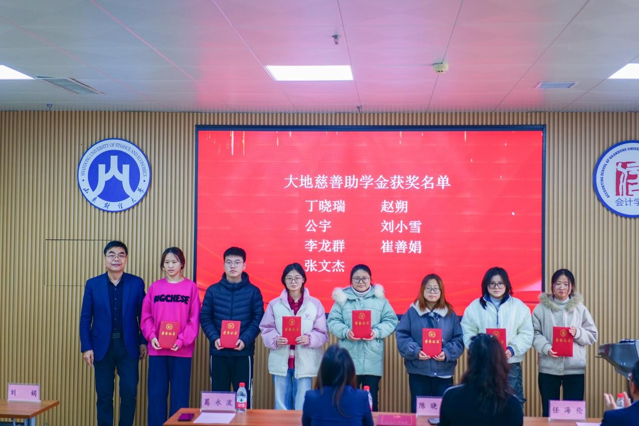 2025年12月19日,山东大地慈善奖助学金颁奖仪式在山东财经大学燕山校区举行。北京大地泰华会计师事务所(特殊普通合伙)轮值首席合伙人李凤玉、人力资源总监陈晓培、线上赌场 党委书记任海伦、院长葛永波、学生工作部副部长刘娟出席仪式。仪式由线上赌场 党委副书记张贞梅主持。